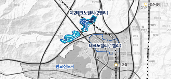 판교테크노밸리는 판교 택지개발사업의 일부공간에 선도기업 입주공간(66만㎡)을 조성, 신산업 중심지로 성장 중이다.