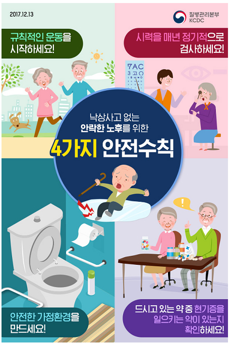 질병관리본부는 “넘어져 다치면 일상생활이 어려워지고 심하면 사망할 수도 있다”면서 준수사항과 대처방법을 안내했다.
