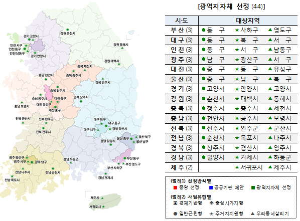 한편, 기존에 도시재생 사업으로 포함되지 않았던 농어촌 지역도 이번 시범사업으로 4곳이 선정됐으며, 향후 농림축산식품부와 함께 사업지원계획을 구체화해 추진한다.