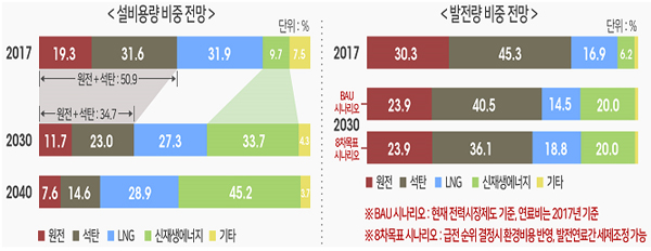 이렇게 되면 올해 우리나라 전체 전력 설비의 50.9%를 차지하던 원전·석탄 비중은 2030년에는 34.7%로 줄어들게 된다.