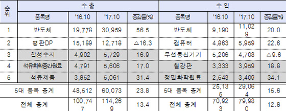 반도체와 석유화학제품 등 중간재 제품이 대중 수출을 이끌었다. 중국의 대한국 중간재 수입을 통한 완성품 수출 구조로 인해 사드 영향이 미미했다.