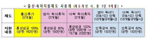 기간제 근로자가 출산휴가 기간(출산 전후 90일) 중 계약기간이 만료되는 경우에도 출산휴가급여(통상임금의 100%, 160만원 상한)를 지급받을 수 있도록 하고 재직기간이 6개월 이상(현재는 1년이상 재직 요건)인 경우에도 육아휴직을 사용할 수 있게 된다. 이를 위해 내년 상반기 남녀고용평등법시행령 개정을 추진한다.