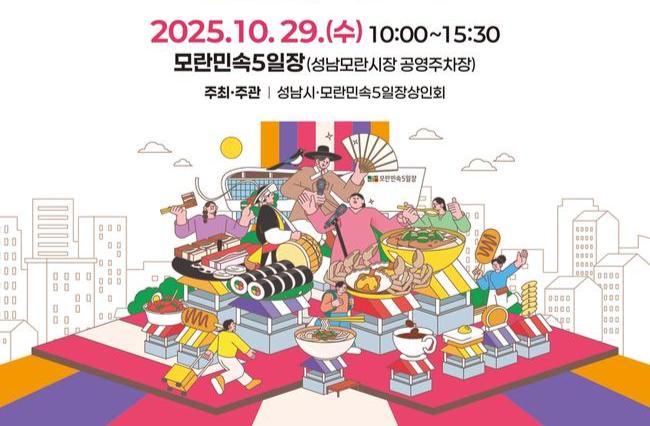 [일간환경연합 김경훈 기자] 성남시(시장 신상진)는 오는 10월 29일 오전 10시부터 오후 3시 30분까지 모란민속5일장(중원구 둔촌대로 68)에서 `2025 모두모여모란` 축제를 연다.