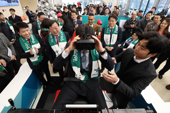 차범근 전 축구감독이 27일 오전 서울 KEB하나은행 본점에서 열린 2018년 평창 동계올림픽대회 및 동계패럴림픽대회 홍보관 개관식에서 VR체험을 하고 있다. (사진=연합뉴스 제공) |