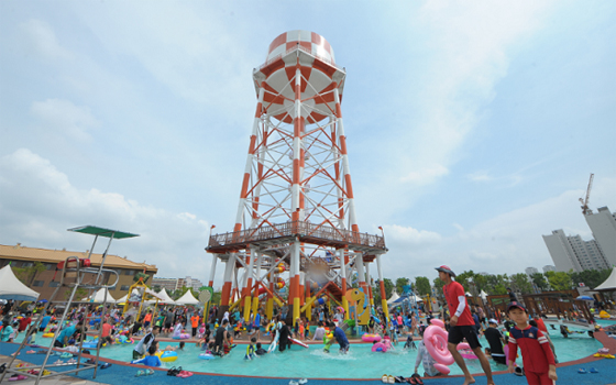 미군 반환기지내 폐 물탱크를 재활용한 물놀이 시설. |
