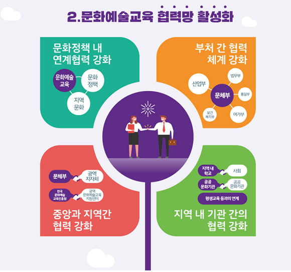 또한 4차 산업혁명에 대비 통합·융합 문화예술교육 등 지역 중심, 수요자 중심으로 재편된다.