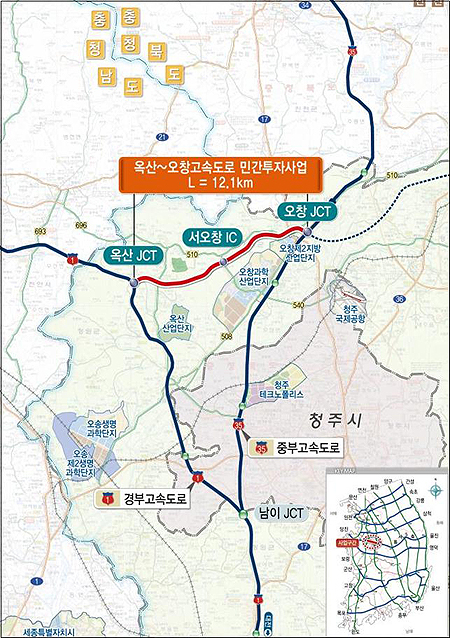 옥산~오창 고속도로 위치도 |