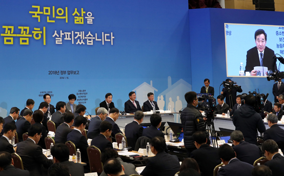 18일 오후 정부세종청사 세종컨벤션에서 이낙연 총리 주재로 정부업무보고가 열리고 있다. (사진= 연합뉴스)