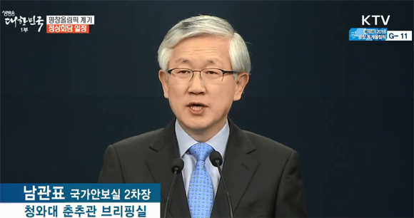 브리핑하는 남관표 청와대 국가안보실 2차장. (사진=KTV 화면 캡쳐) |