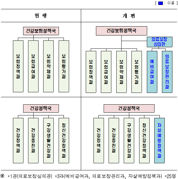 또 자살예방 정책을 수행할 ‘자살예방정책과’가 복지부 내에 신설된다.