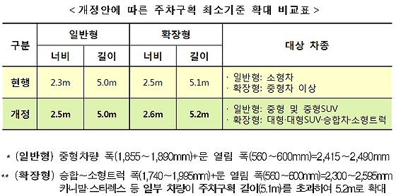 새로운 주차구획 최소기준 적용은 내년 3월부터 시행될 예정이다.