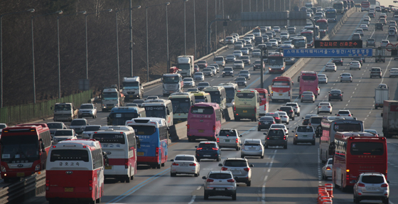 설 연휴 경부고속도로 하행선 서울톨게이트 부근 모습.(사진=(c) 연합뉴스) |