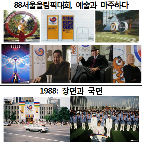 ‘1988 서울올림픽대회, 예술과 마주하다’와 ‘수집가의 방’에서는 1988 올림픽 휘장과 포스터, 마스코트 등 당시의 시각디자인물을 통해 1988년 올림픽 준비과정을 볼 수 있다. ‘1988년: 장면과 국면’에서는 당시 신문기사와 영상 등 일상의 기록을 통해 시대상을 읽을 수 있다.