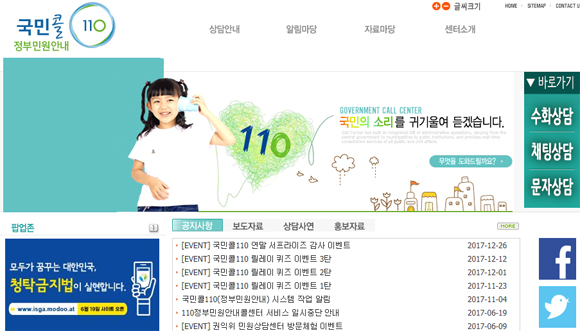 정부민원안내 ‘국민콜110’ 홈페이지. |