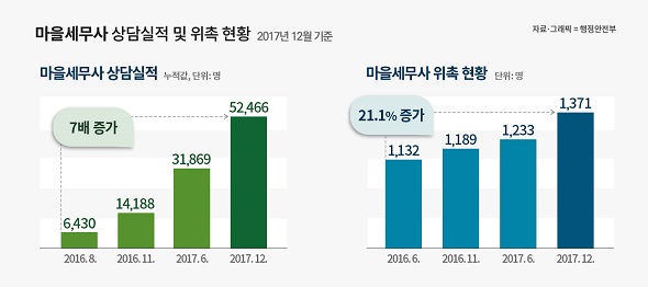 행정안전부는 ‘마을세무사’ 제도를 통한 상담이 지난 2016년 6월 시작 이후 지난해 말까지 총 5만 2466건을 기록했다고 밝혔다.