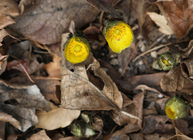 복수초는 이른 아침에는 꽃잎을 닫고 있다가 일출과 함께 꽃잎을 점차 펼치기 때문에 활짝 핀 복수초를 감상하려면 오전 11∼3시가 가장 좋다.