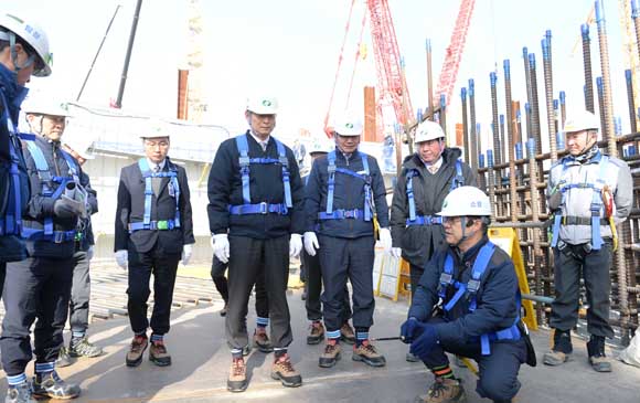 백운규 산업통상자원부 장관이 22일 울산 울주군 신고리 5·6호기 건설현장을 방문해 공사 진행 현황을 점검하고 있다. (사진=산업통상자원부) |