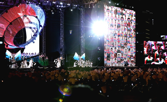 전야제에 참가한 국민들은 행사 전 받은 LED 팔찌를 점등하면서 태극 문양을 만들었다.