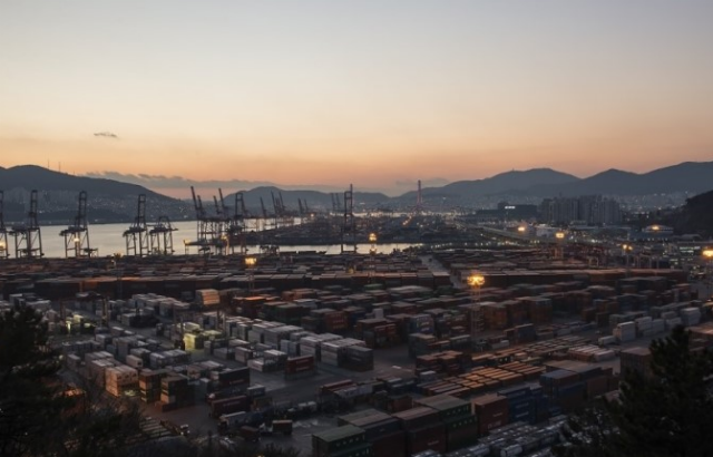 수출입 화물이 든 컨테이너가 쌓여 있는 부산 남구 부산항 신선대부두. |
