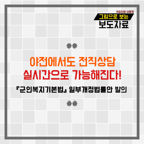 [일간환경연합 신상미 기자]국방부는「군인복지기본법」에 따라 5년마다 수립하도록 되어 있는「’18~’22 군인복지기본계획」을 확정하였다.