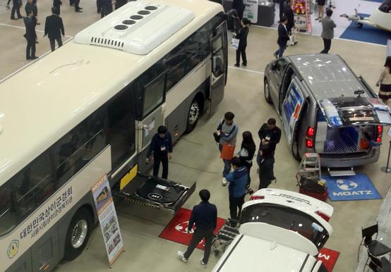 지난해 11월 부산 해운대구 벡스코에서 열린 ‘2017 코리아 트럭쇼’에서 선보인 장애인을 위한 휠체어 리프트 차량. (사진=(c)연합뉴스) |