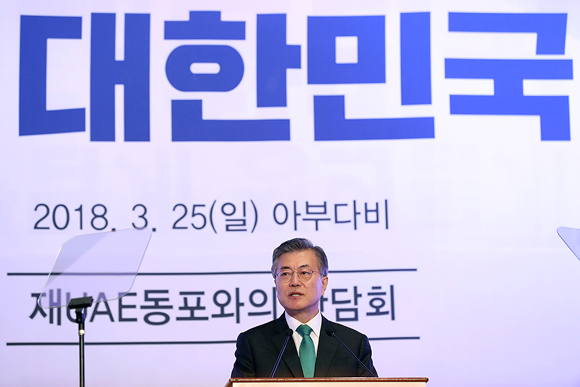 문 대통령은 이날 아부다비 시내 한 호텔에서 UAE 동포간담회를 갖고 한국은 UAE에게 동아시아 최고의 협력 파트너이고, UAE는 한국에게 중동지역 최고의 협력 파트너 라며 이같이 밝혔다.