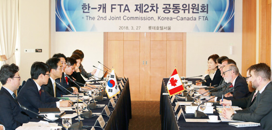 27일 서울 소공동 롯데호텔 샤롯데룸에서 열린 한-캐나다 자유무역협정(FTA) 제2차 공동위원회. (사진 = 산업통상자원부) |