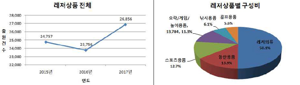 최근 3년간 레저상품 전체 상표출원 추이 및 상품별 구성비 |