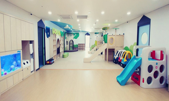 최근 은행의 지점 통폐합에 따라 발생되는 유휴점포를 대기업이 사회공헌활동의 일환으로 중소기업 공동 직장어린이집으로 제공한 최초 사례로 29개 중소기업 근로자들이 이용할 전망이다.