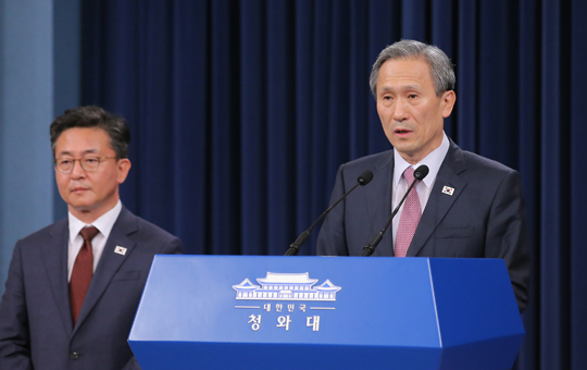 | 김관진 국가안보실장이 25일 오전 청와대에서 공동합의문을 발표하고 있다. |