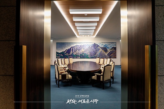 [일간환경연합 김경훈 기자]남북정상회담 준비위원회는 4월 27일 역사적인 남북정상회담이 열릴 판문점 평화의 집 주요 공간을 정비했다.