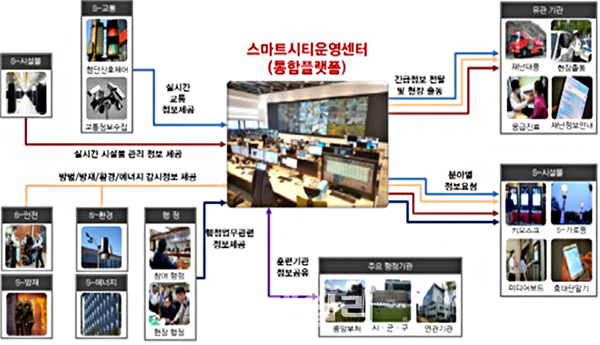 스마트시티 통합플랫폼은 지자체 스마트시티 센터에서 방범·방재, 교통, 시설물 관리 등 분야별 정보시스템을 연계·활용하기 위한 기반 소프트웨어다.