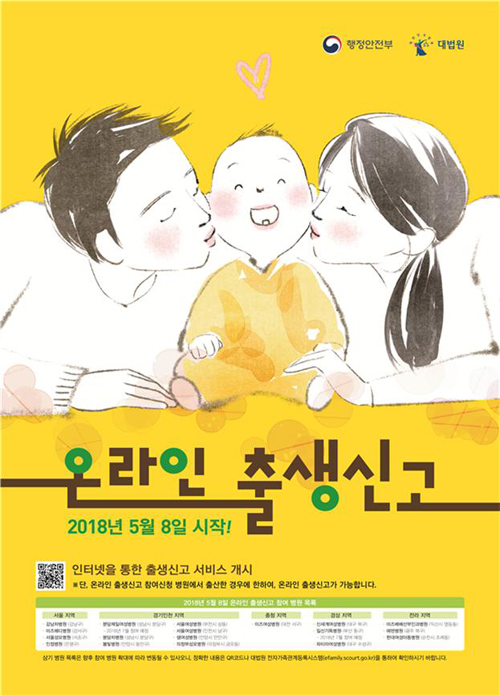 앞으로는 온라인 출생신고에 참여하는 전국 18개 병원에서 출생한 아이 부모는 ‘대법원 전자가족관계등록시스템(efamily.scourt.go.kr)’에서 출생신고를 할 수 있게 된다.