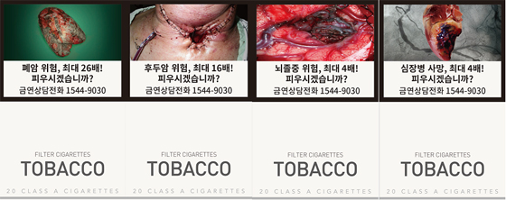 현재 경고그림은 질환(폐암·후두암·구강암·심장질환·뇌졸중)을 주제로 하는 5종과 비질환(간접흡연·임산부흡연·성기능장애·조기사망·피부노화)을 담은 5종으로 구성돼 있다.