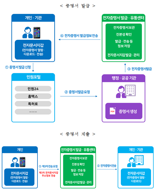 그동안 전자정부 추진으로 대부분의 행정·공공기관에서 온라인 민원 신청이나 온라인 증명서 발급이 가능해졌으나, 증명서 등 민원처리 결과문서는 여전히 종이 문서로만 발급되고 있다.