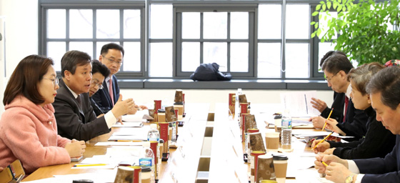 도종환 문화체육관광부장관이 지난 3월 20일 국립현대미술관 서울관에서 공연·시각·문학 등 주요 예술분야 현장 관계자들을 만나 환경 개선 및 권익향상에 대한 의견을 수렴하고 있다. (사진 = 문화체육관광부) |
