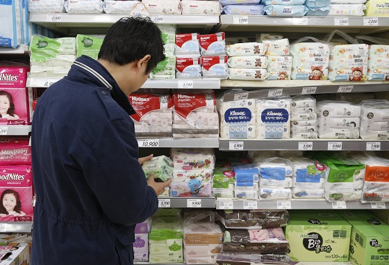 서울 시내 한 대형마트에서 시민이 물티슈를 살피고 있다.(사진=저작권자(c) 연합뉴스, 무단 전재-재배포 금지) |