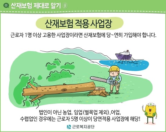 예를 들면 개인 설비업자가 550만원을 받고 시공하는 주택 수리공사나 주 3일만 아르바이트 직원을 사용하는 편의점 등 (상시노동자 0.4명)에서도 산재보상이 가능해진다.