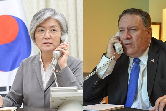 29일 강경화 장관(왼쪽)과 마이크 폼페이오 미 국무장관이 전화 통화를 가졌다고 외교부는 밝혔다. |