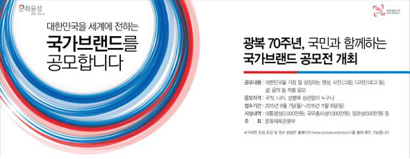 [일간환경연합 장영기 기자]문화체육관광부는 오는 7일부터 11월 8일까지 ‘국가브랜드 공모전’을 개최한다.