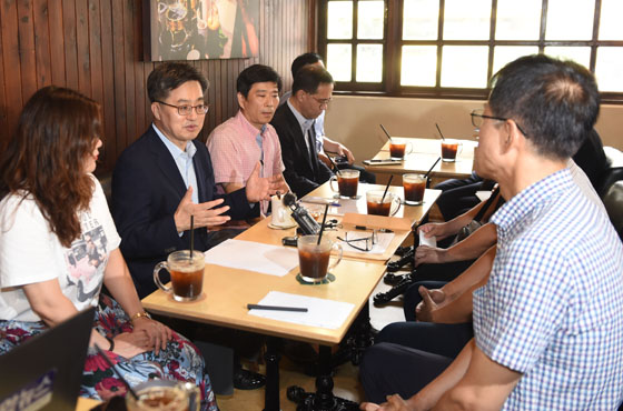 김동연 부총리 겸 기획재정부 장관이 7월 18일 서울 신촌 지역을 방문, 인근 소상공인들과 대화의 시간을 갖고 애로사항을 청취하는 등 현장점검을 하고 있다.(사진 = 기획재정부) |