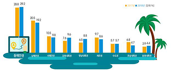 국내여행 예상 휴가지역별 분포(비율) |