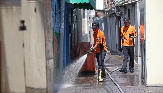 소방관들이 쪽방촌 골목길 열기를 식히기 위해 소방호스로 물을 뿌리고 있다. (사진=(c) 연합뉴스) |