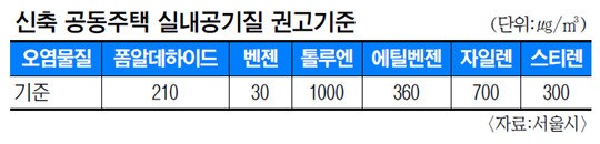 [일간환경연합 장영기기자]지난해 전국의 새 아파트 등 신축 공동주택의 15%는 실내공기질의 권고기준을 초과한 것으로 드러났다.