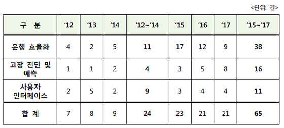 고장 진단 및 예측 기술 분야는 이전 3년에 비해 최근 3년간 특허 출원이 4배가 증가해 가장 크게 증가한 기술분야다.