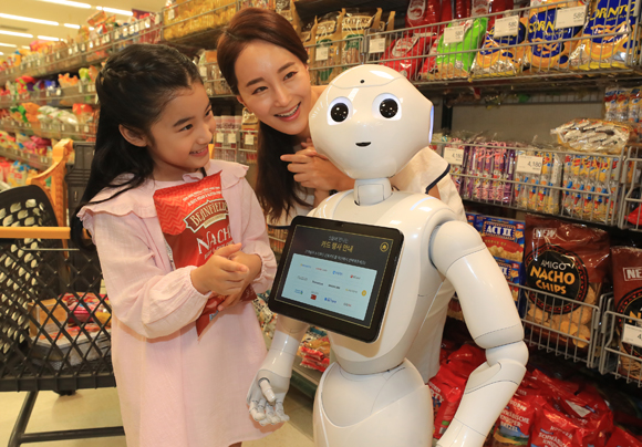 쇼핑 정보를 안내해주는 로봇 페퍼(Pepper) 시범 서비스. (사진=(c) 연합뉴스,) |