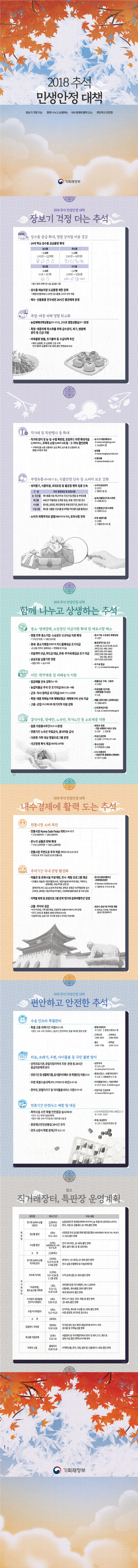 [일간환경연합 신상미 기자]정부는 지난 8월 30일 '추석 민생안정대책'을 발표했습니다. 장보기 걱정은 덜고, 함께 나누고 상생하는, 내수경제에 활력 도는, 편안하고 안전한 명절을 보낼 수 있도록 최선을 다하겠습니다. 풍요로운 한가위 되세요!