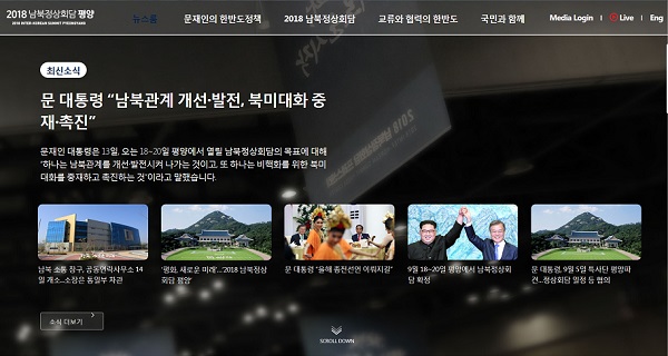 남북정상회담 온라인 플랫폼 ‘뉴스룸’ 최신소식. |
