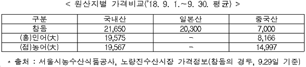 수입하는 횟감용 활어 중 약 32.4%가 참돔·홍민어·점농어이며, 이들의 원산지 표시 위반건수는 평균적으로 전체 활어 위반건수의 27%를 차지한다. 세 어종은 국내산과 일본산 또는 중국산과의 가격차이가 크기 때문에 국내산으로 속여 파는 경우가 많은 것이다.