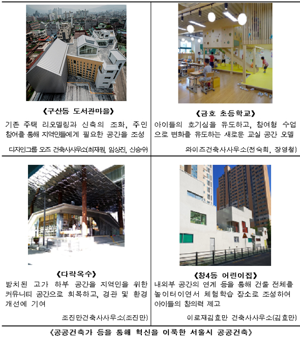 또 현재 설계자의 참여가 배제되고 있는 공공건축의 시공과정에서도 설계자의 설계의도가 구현될 수 있도록 하는 제도적 장치도 마련할 예정이다.